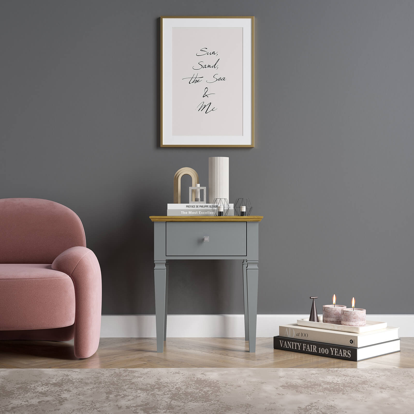 Тумба прикроватная Ольса-С 01 серый №7042 + антик №24