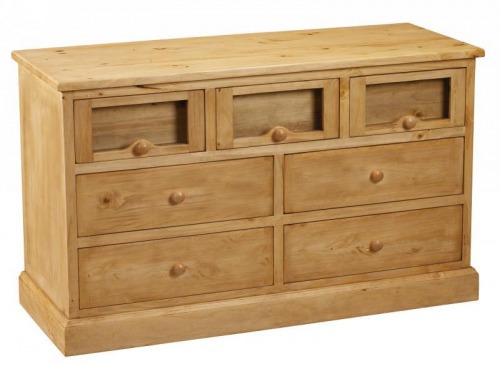 Комод COM 4+3G с ящиками (grainetier) для засыпки декоративных элементов (лепестки цветов, зерна, сухоцветы, ракушки и т.п.). Массив сосны, старение