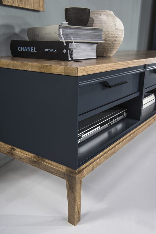 Тумба ТВ 02 Гранада серый 7016/антик 24   2 ящика и 2 открытые ниши массив сосны