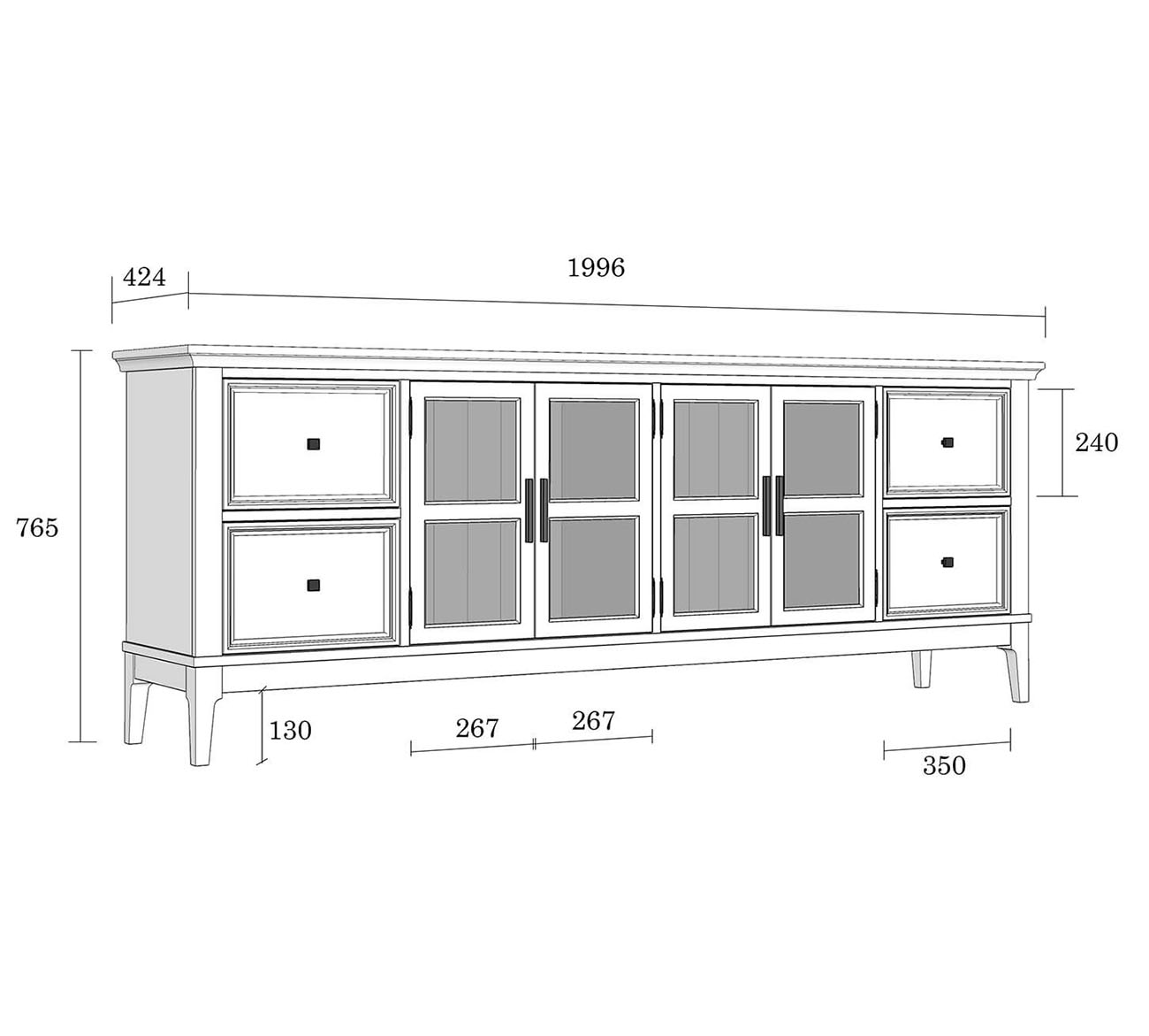 Четыре распашные стеклянные дверцы.